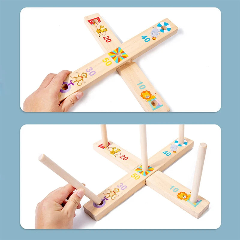 1 Set Wooden Ferrule Game Puzzle Toy Ring Toss Montessori Game Throwing Ring Ferrule Game For Family Children Educational Toy