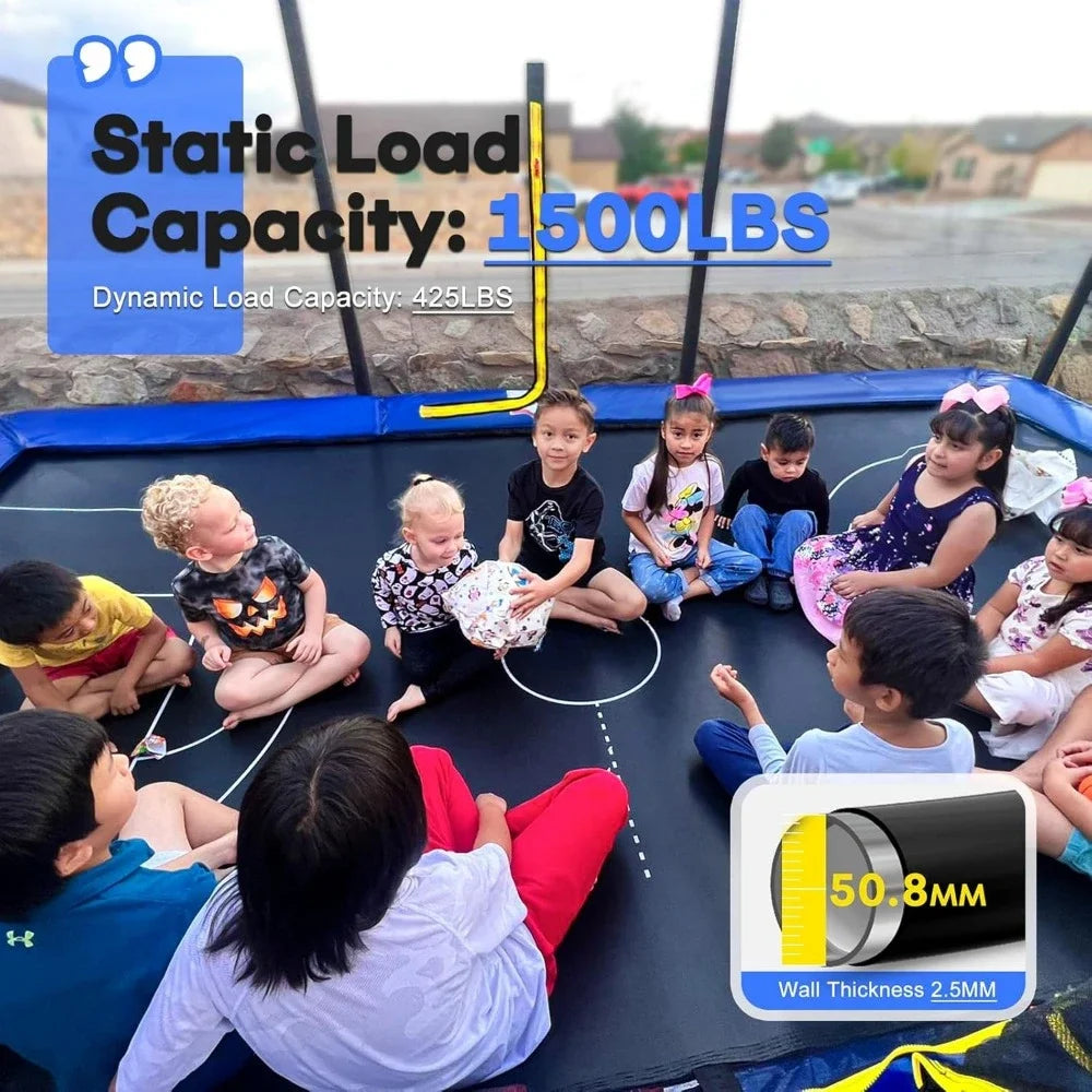 1500LBS Weight Capacity Rectangle Trampoline 9X15FT Outdoor Square Gymnastics Trampolines for Kids
