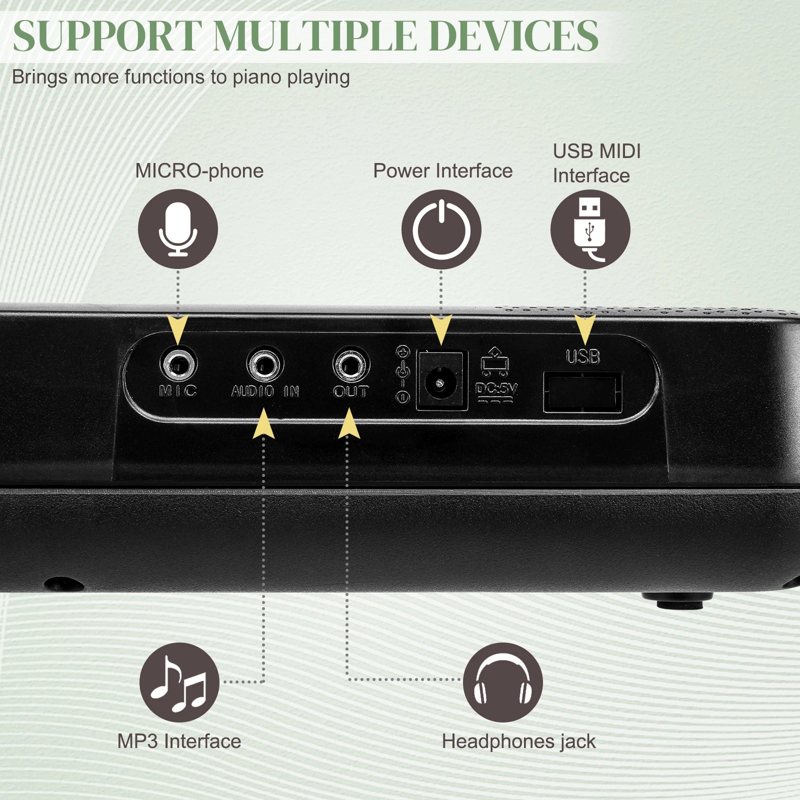 61 Key Piano Keyboard Semi-Weighted Keys Digital Music Keyboard with Power Supply Piano Stand Stool and Microphone Piano Sets