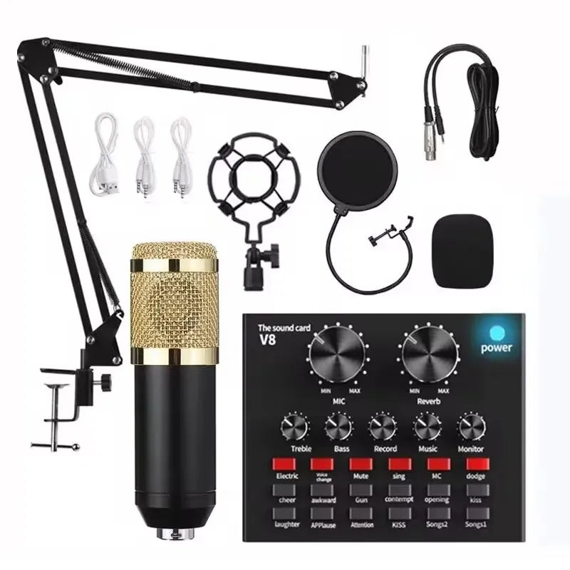BM800 V8 Sound Card Set Professional Audio Condenser Mic Studio Singing Microphone for Karaoke Podcast Recording Live Streaming