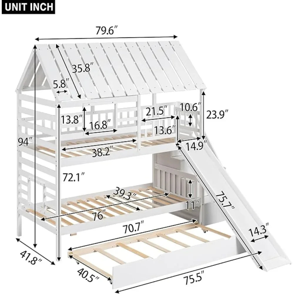 Bunk Beds Twin Over Twin with Slide,Twin Bunk Bed with Storage Stairs and Trundle,Wood Kids Bunk Bed with Roof and Window Design