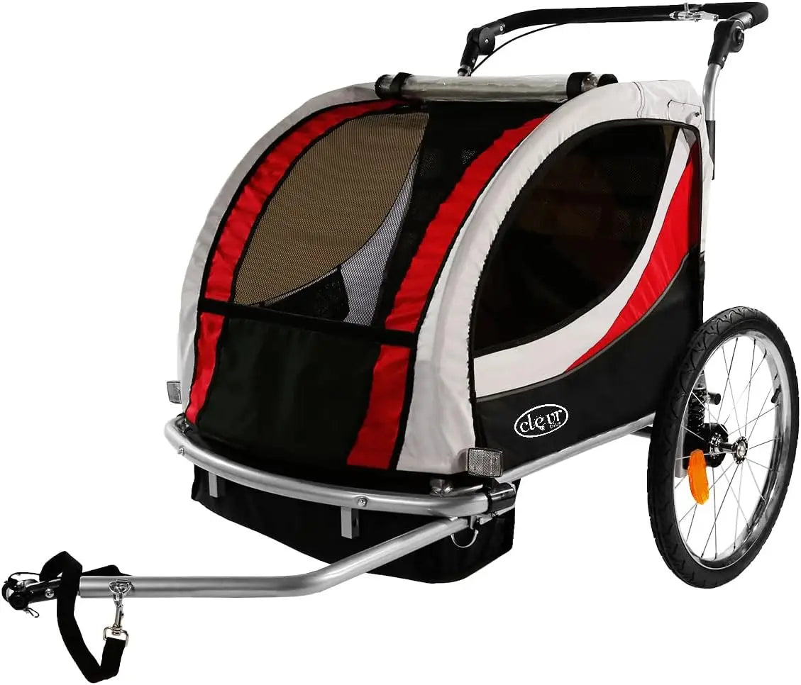 Deluxe 3-in-1 Double 2 Seat Bicycle Bike Trailer Jogger Stroller for Kids Children | Foldable Collapsible w/Pivot Front Wheel