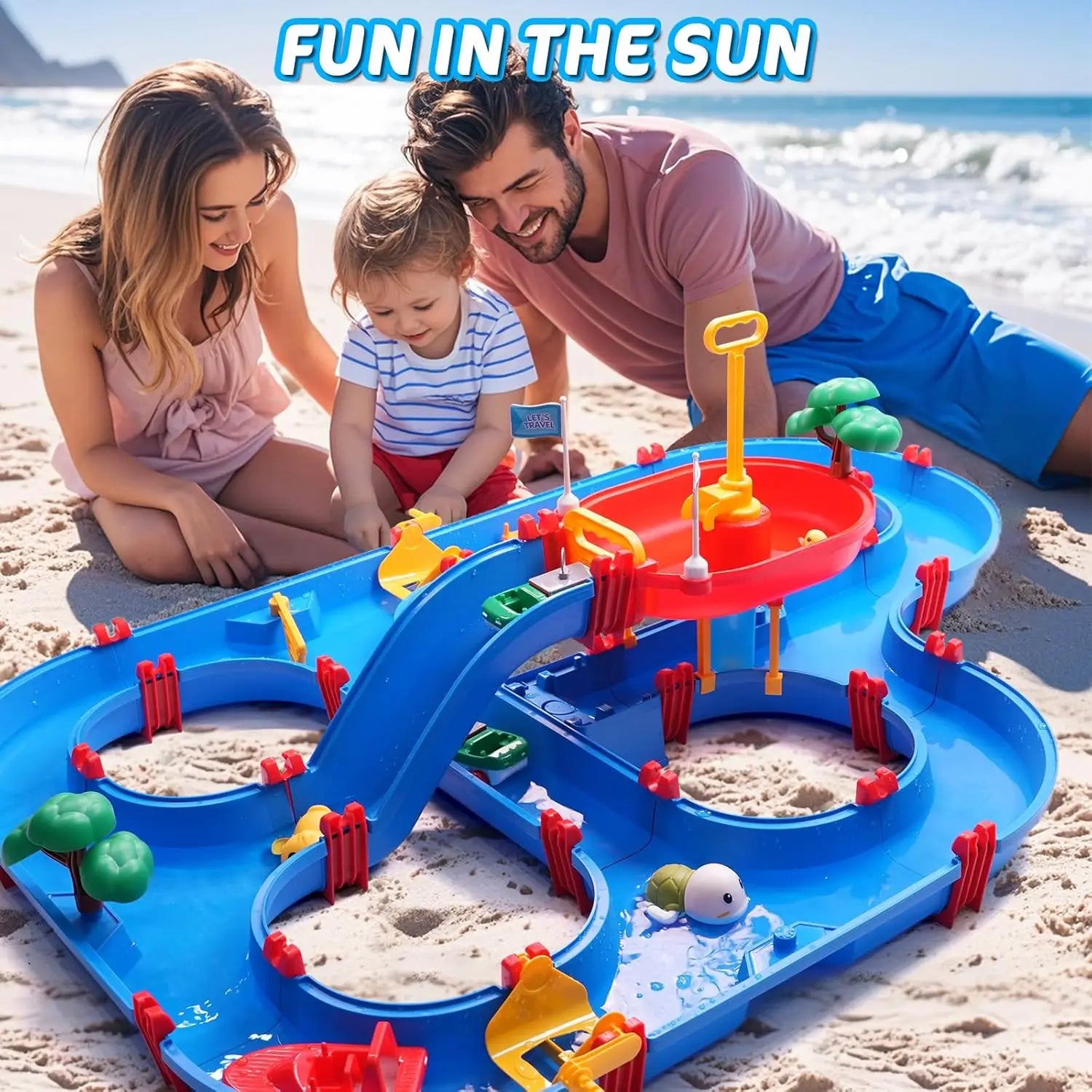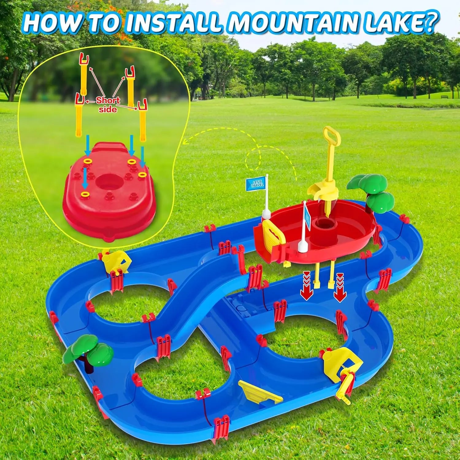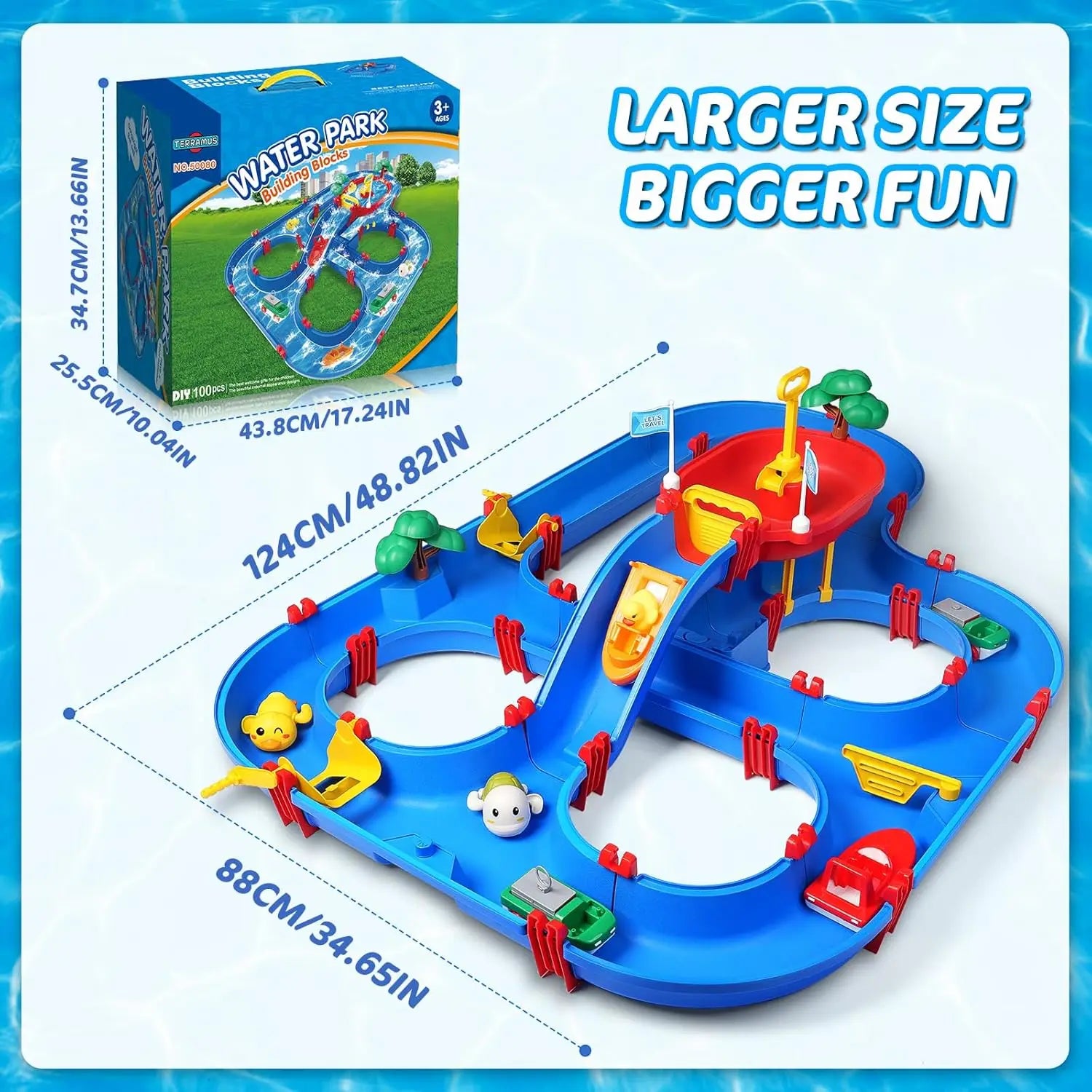 Double-Tier Kids Water Table Toys, 100PCS Water Park Playset with Pump, DIY Toddler Waterways, Summer Outdoor Toys for Backyard,