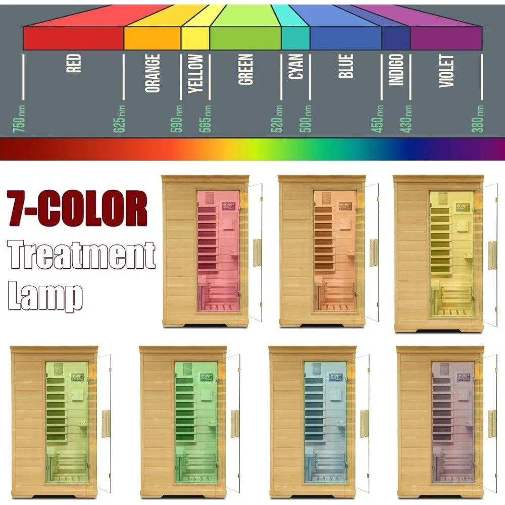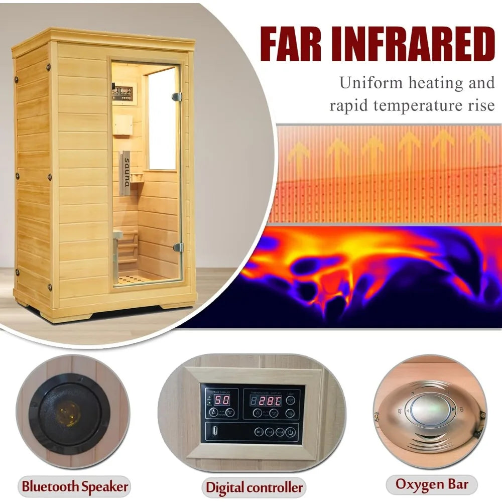 Far Infrared Sauna,1 Person Indoor Side-Opening Home Sauna Canadian Hemlock Wood Dry Sauna 1050W Carbon Heating Panels
