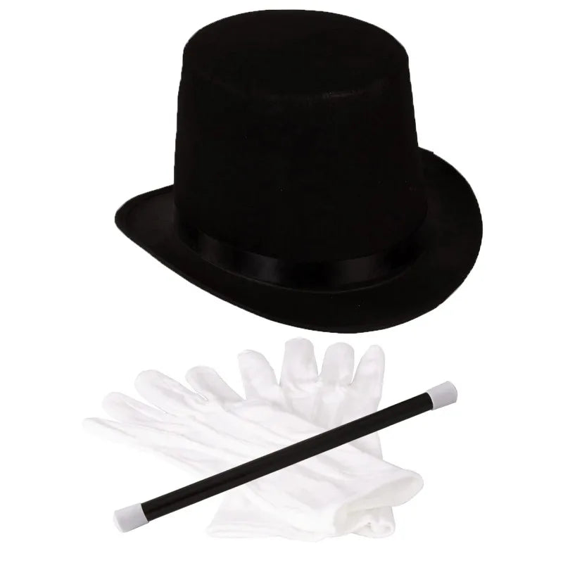 Fun party hat magician costume 3pcs magician dress up costume baton hat wand gloves set Kids Adult Stage Performance Costume