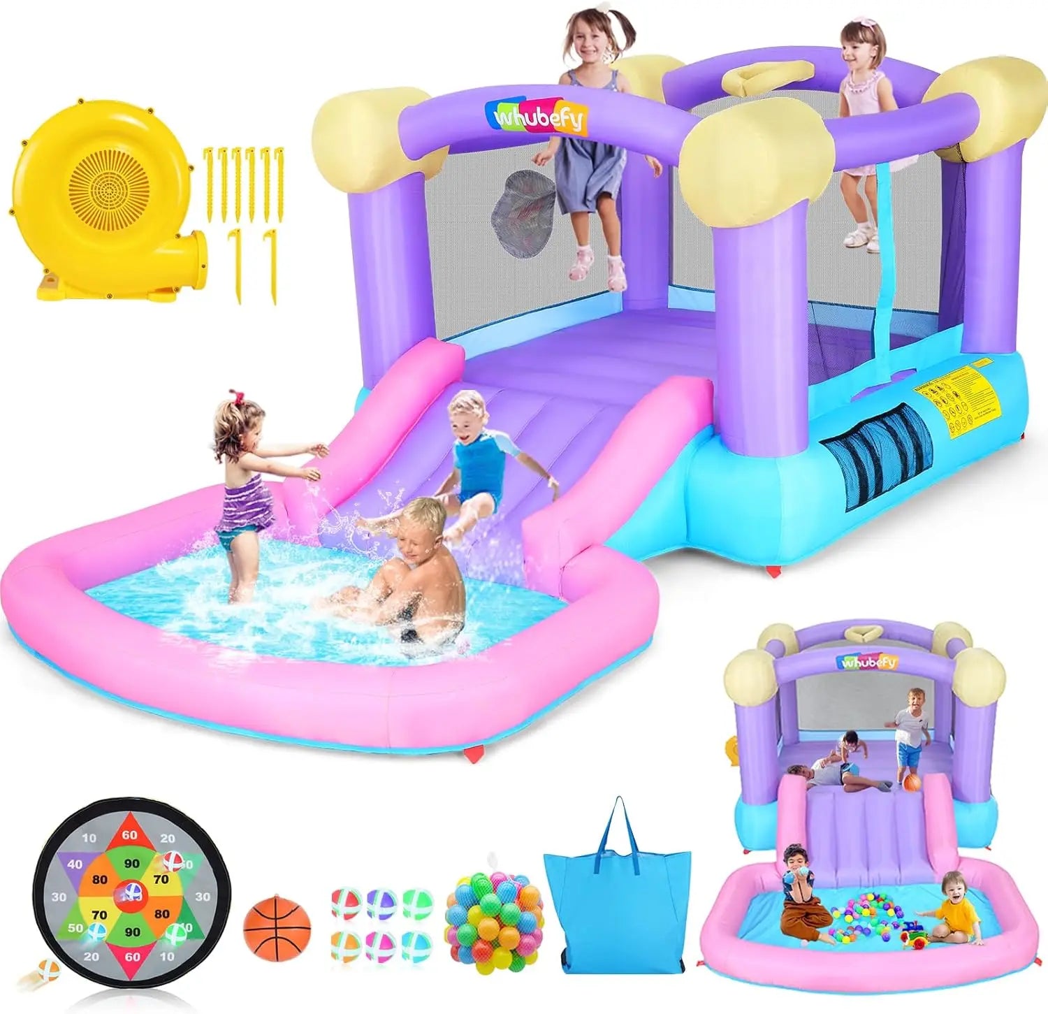 Inflatable Bounce House for Kids 3-6 with Ball Pit & Dart Board - Toddler Water Bounce House Jump 'n Slide Park for Indoor Outdo