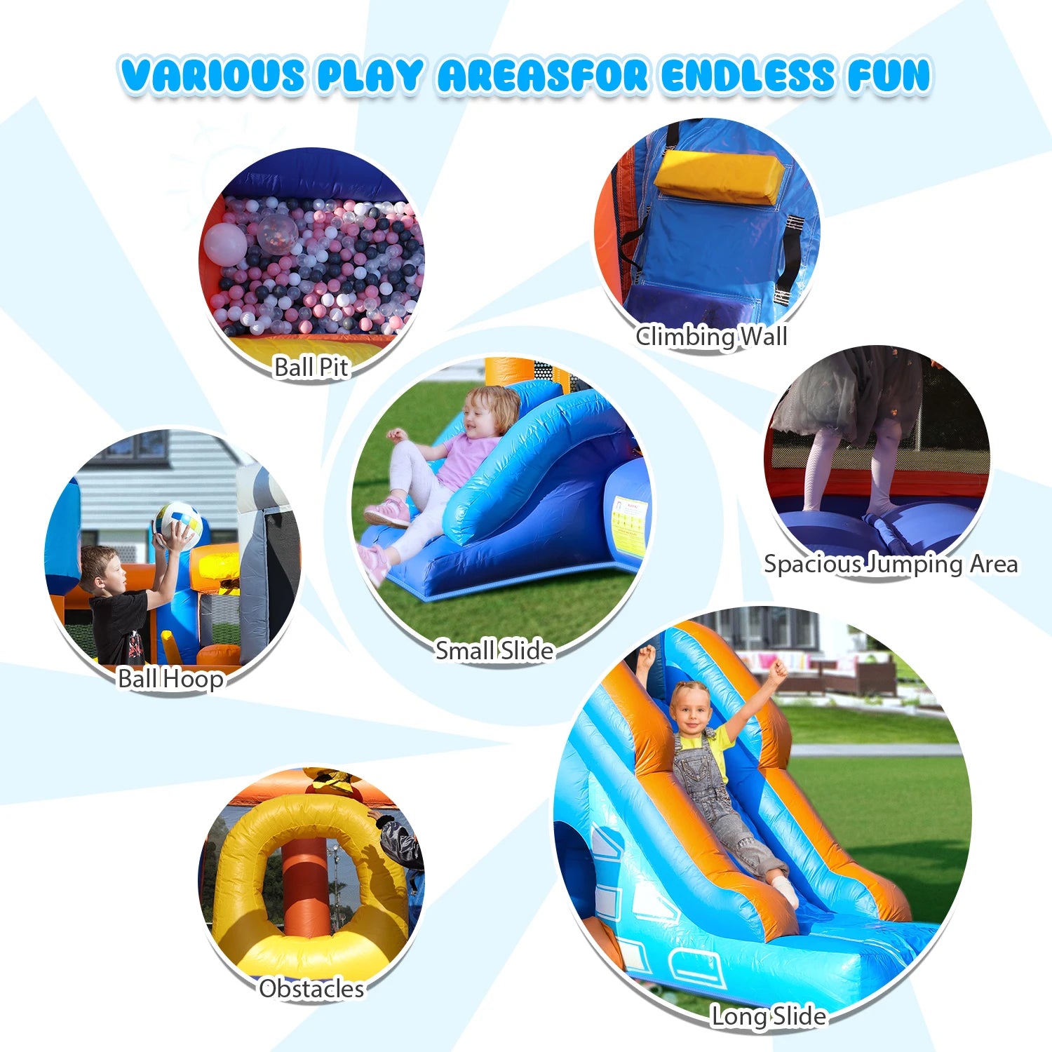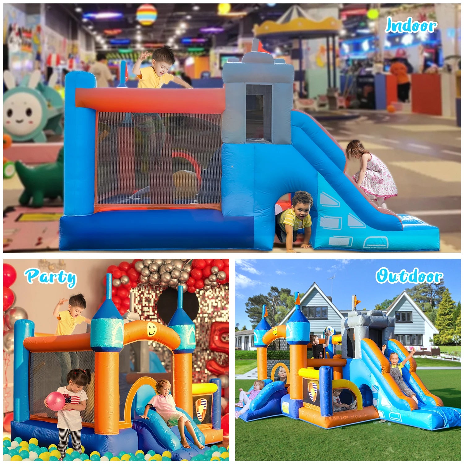 Kids Bouncy Castle House 16x11.7x10ft PVC Inflatable Bounce House With 2 Slides Tunnels Climbing, Basketball Hoops Ball Pit, Jum