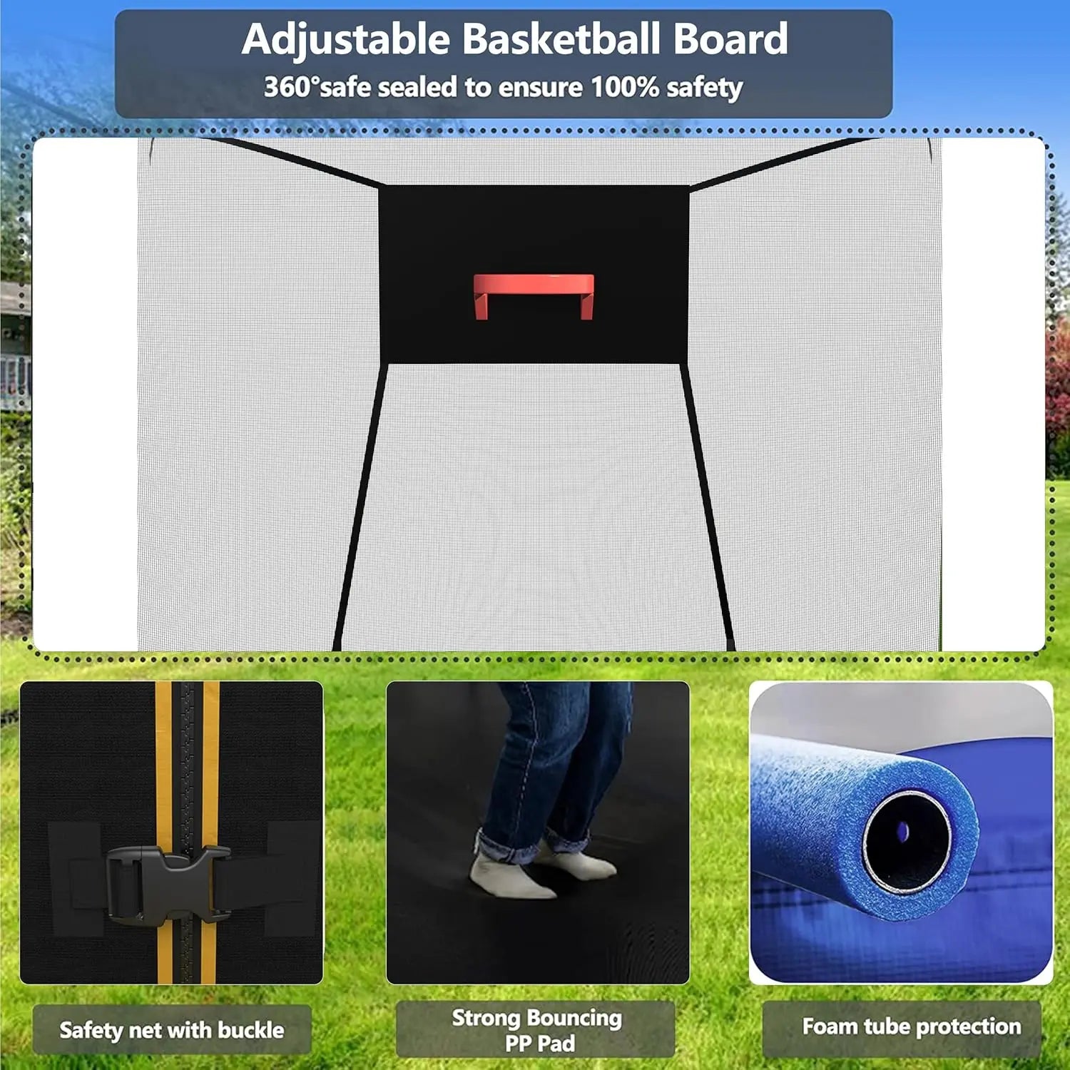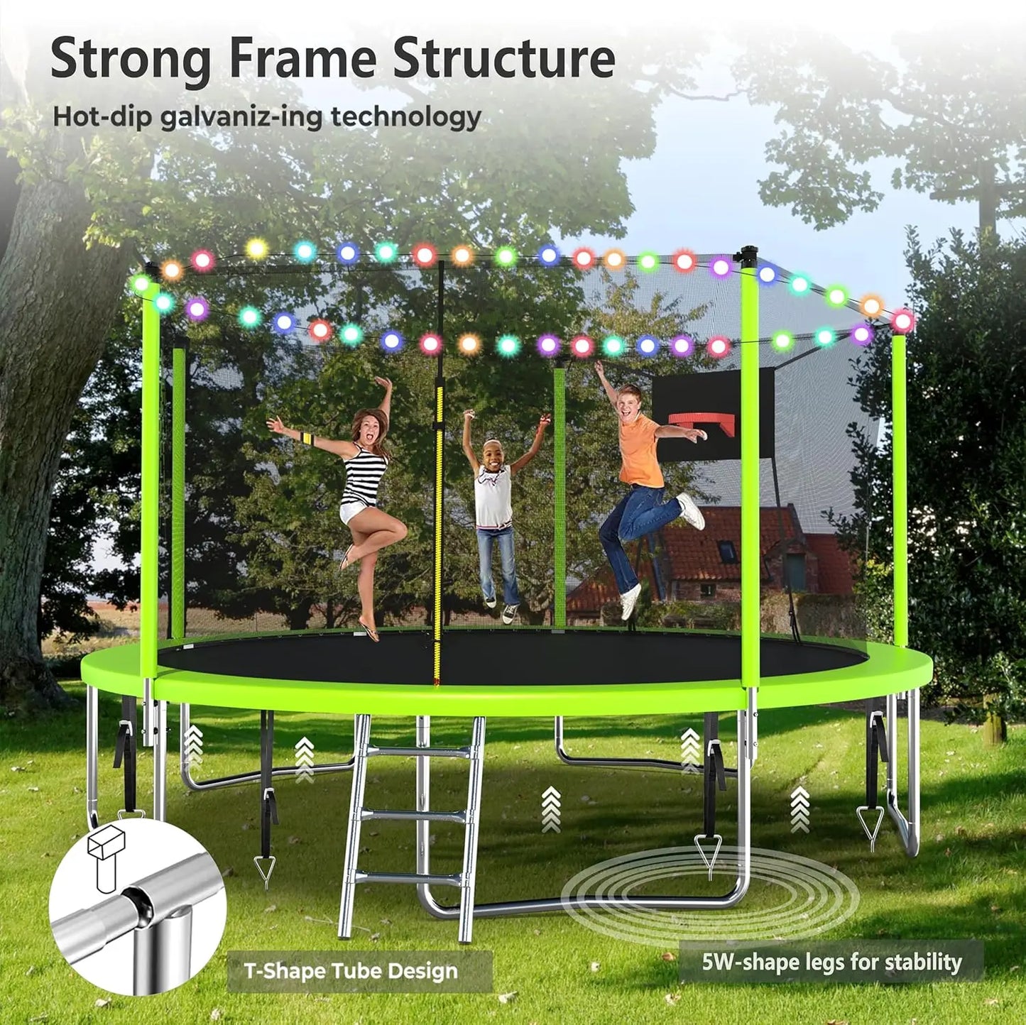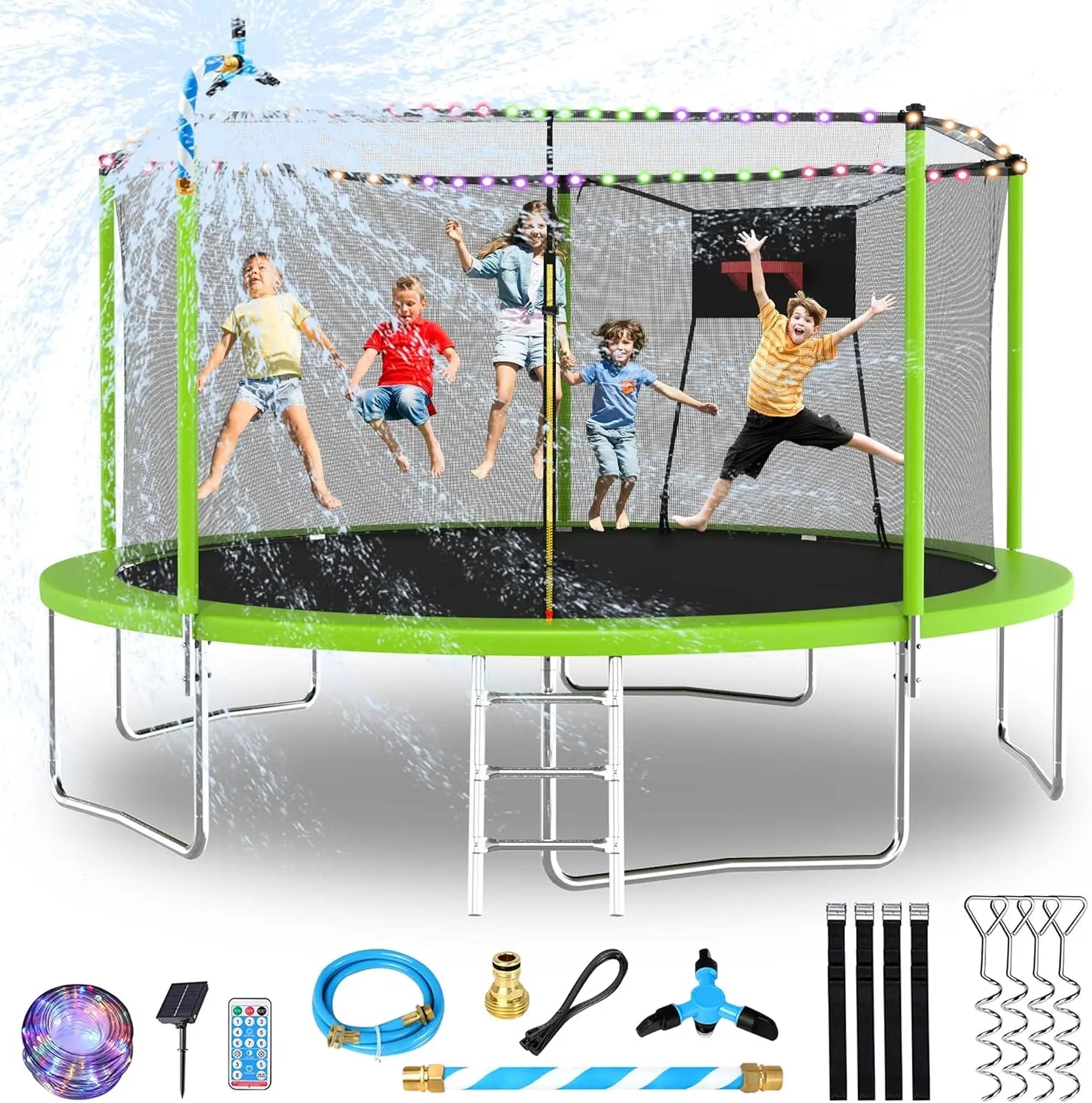 Upgraded 14FT 15FT Trampoline for Kids and Adults, Large Outdoor Trampoline with Stakes, Light, Sprinkler, Backyard Trampoline w