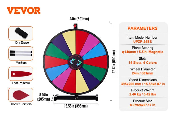 VEVOR 18/24/36 inch Spinning Prize Wheel 14 Slots Spinning Wheel Tabletop or Floor Standing Win Fortune Spin Games in Party Pub