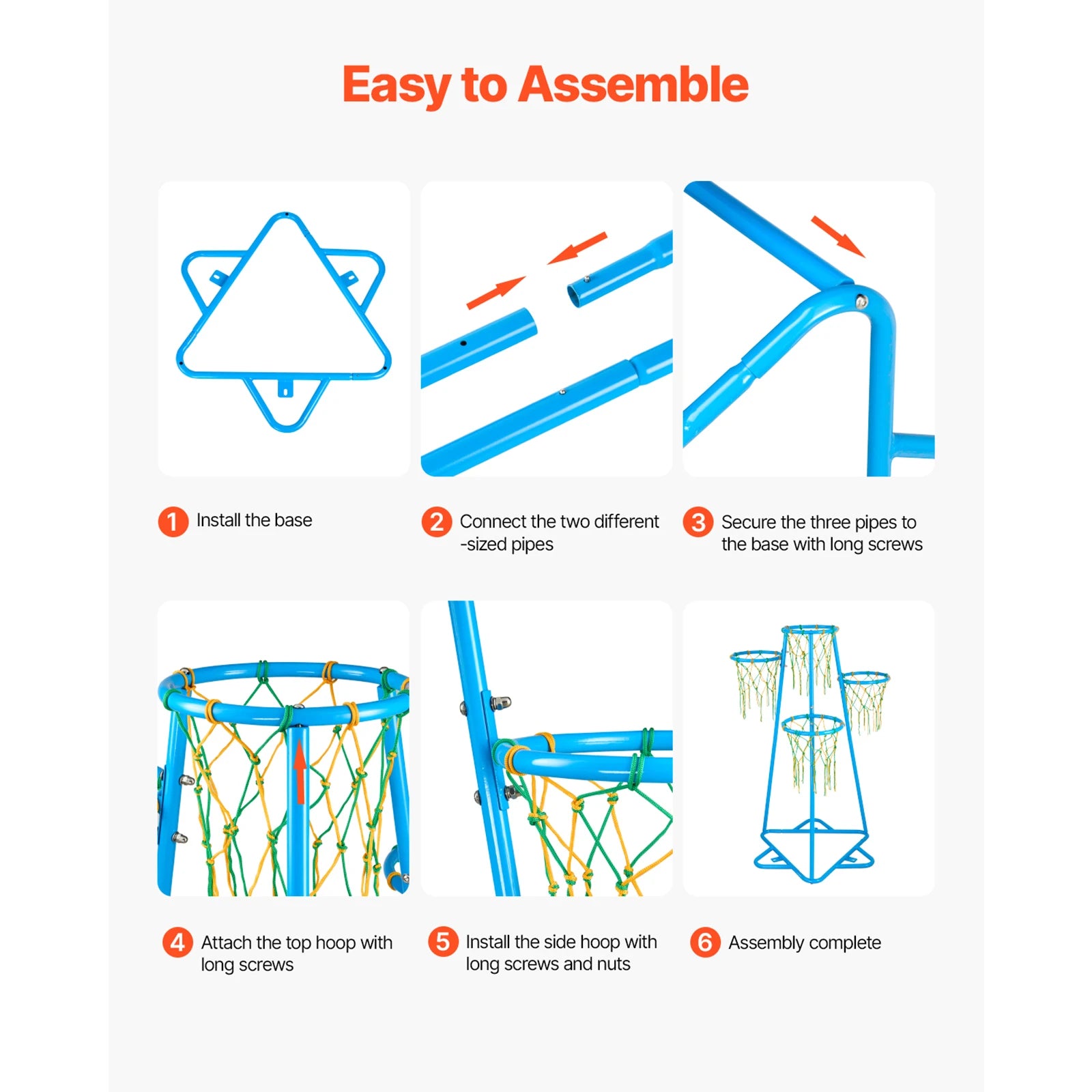 VEVOR 4-Hoop Kids Basketball Hoop Stand with Adjustable Heights & 3 Balls for Boys & Girls Indoor Outdoor Basketball Sport Toys