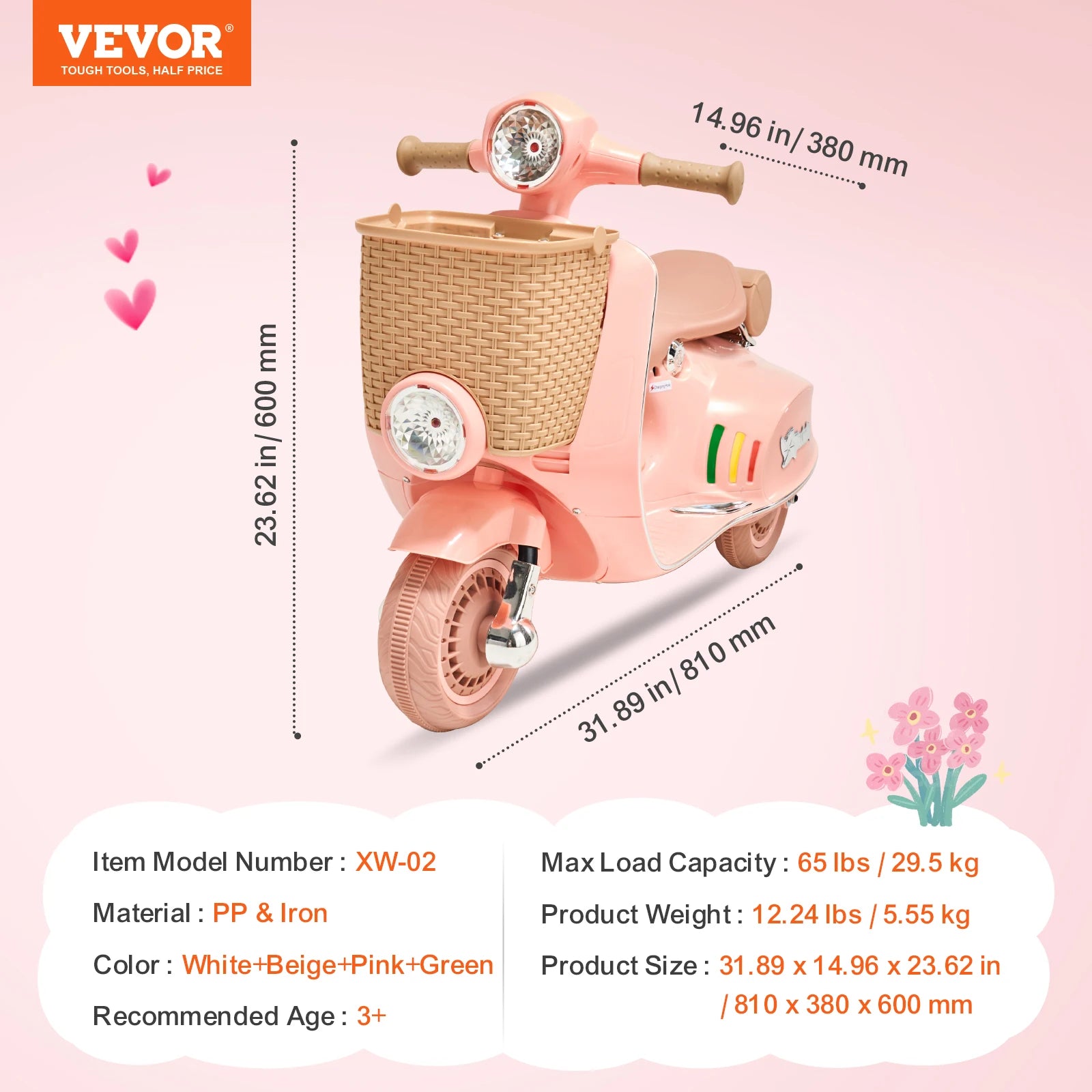 VEVOR Kids Ride On Motorcycle 6V/12V Battery Powered Electric Motorcycle Trike with Speed 2mph Ride on Toys for Children Gifts